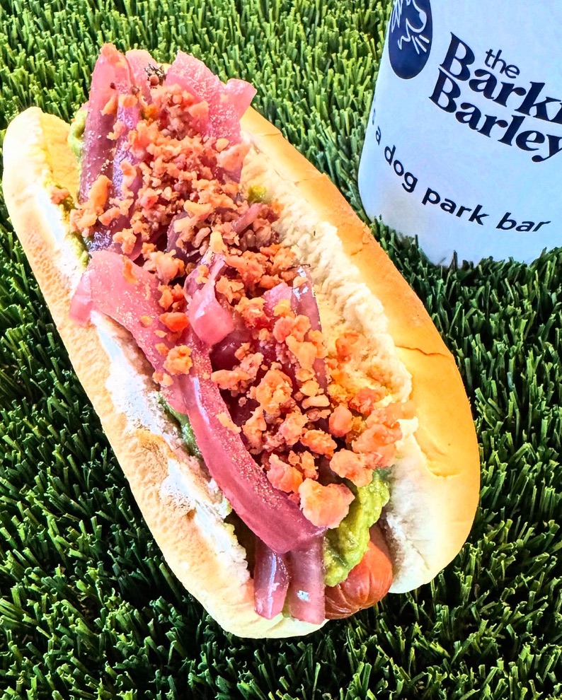 We strive to provide a safe, comfortable, and enjoyable atmosphere for both dogs and their owners, offering a diverse menu of refreshments such as locally crafted beers, and ciders as well as artisan sodas. Our food menu is simple – we got dogs, hot dogs with great topping choices and easy snacking options that allow you to enjoy your time at our facility without the interruption of a wet nose in your four course meal. Our commitment to responsible pet ownership is reflected in our facilities, ensuring that dogs are not only welcome but also catered to with amenities such as water stations, designated play areas, and dog-friendly seating.